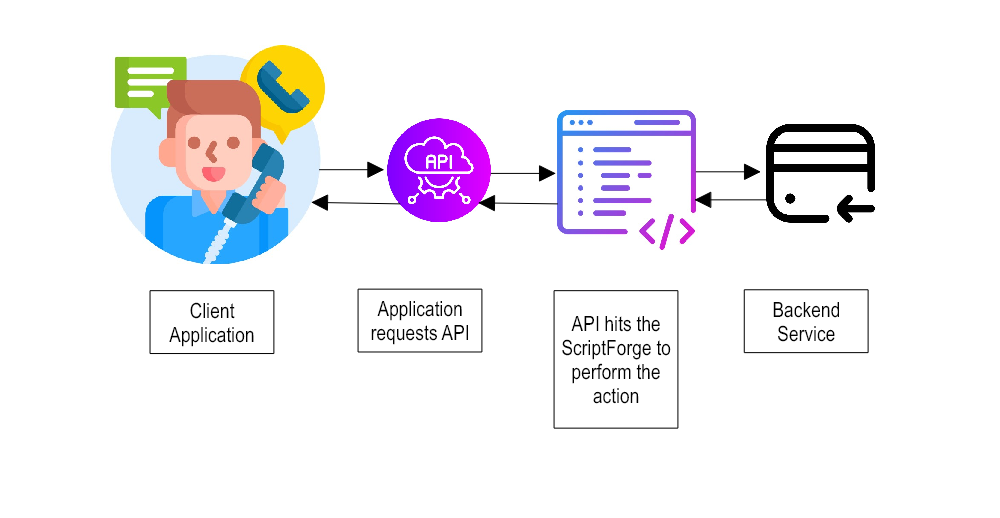 When your customer wants to interact with your systems to do something that is specific to you, they can call an endpoint that will pass the request to ScriptForge.