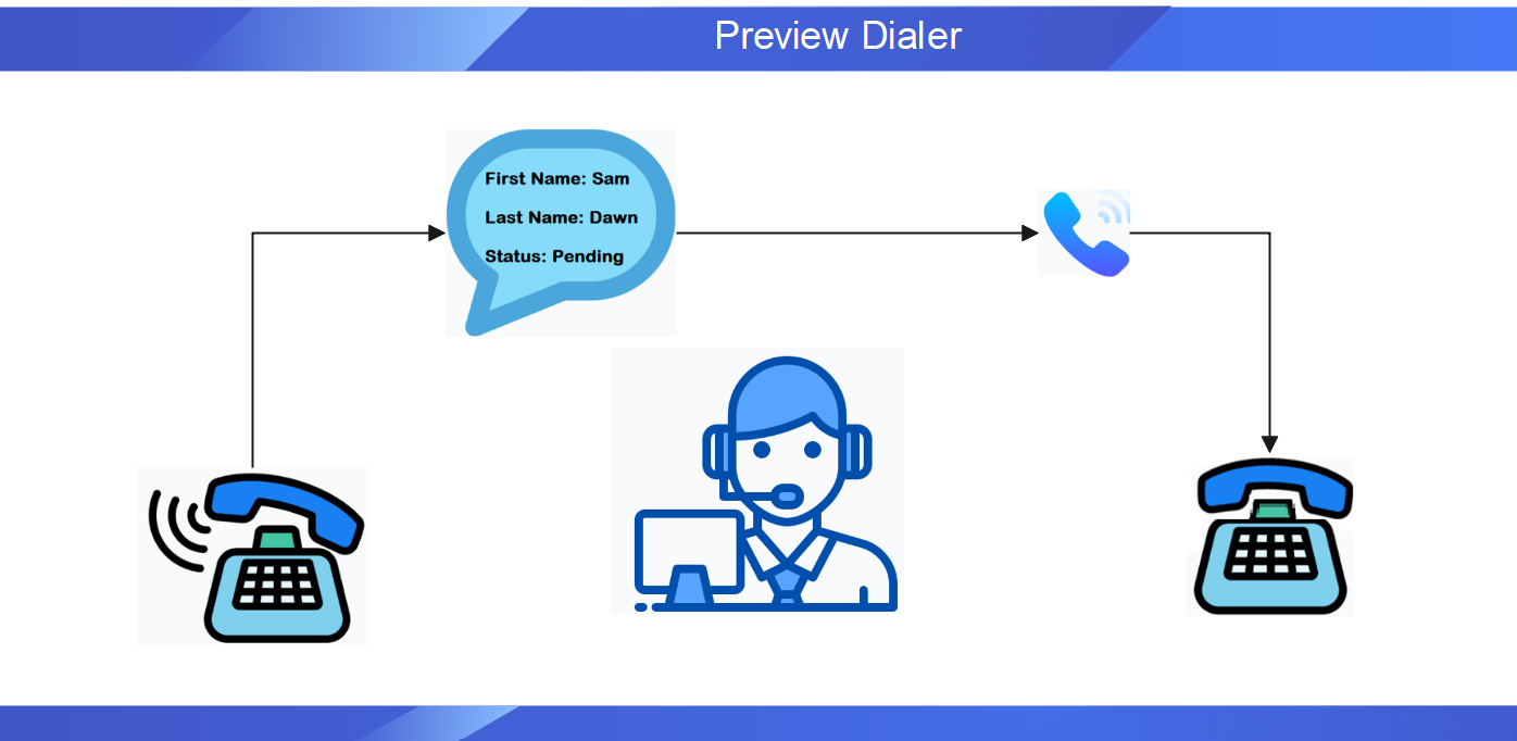 A Preview Dialer automates the outbound calling procedures by dialing numbers from a pre-defined list. It's intended to maximize productivity and efficiency. It is most effective when used by call centers and for telemarketing activities.
