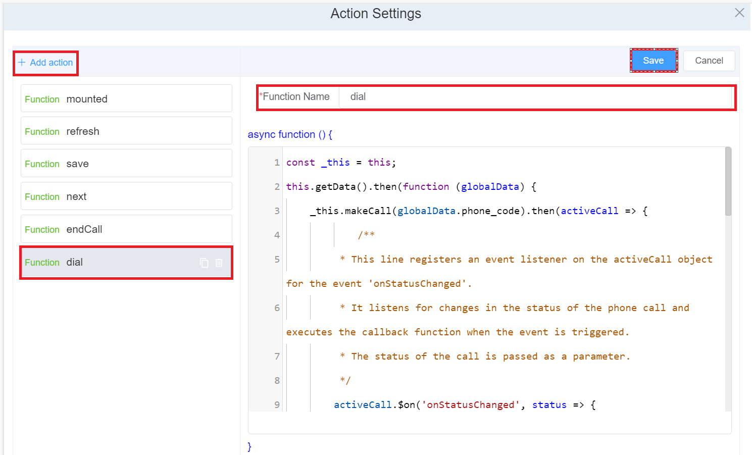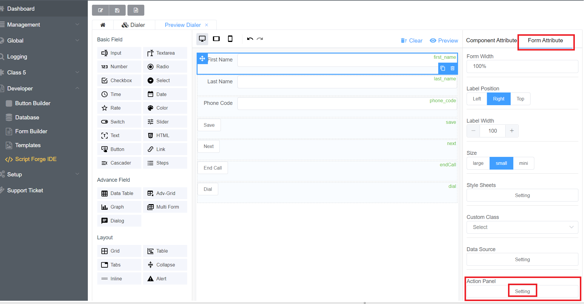 - After refreshing the page, click on the created Dialer script, add the code and