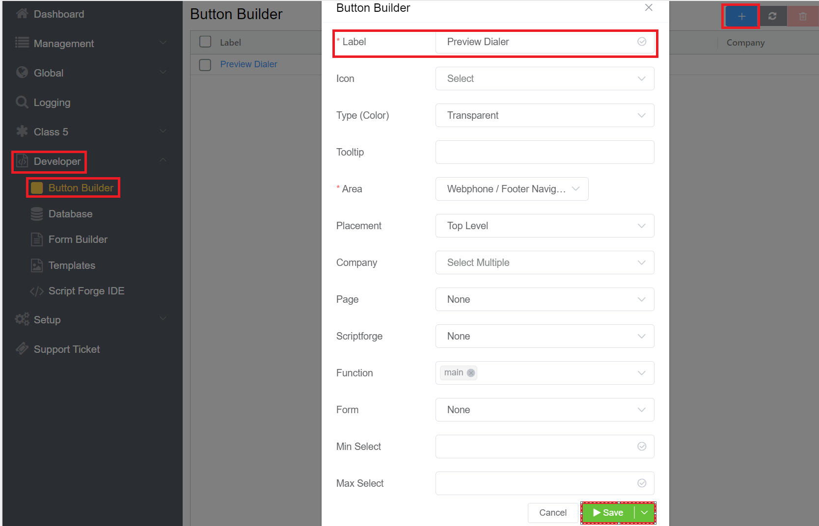 Another interesting feature is that adding the button for the Preview Dialer can be done with the help of the Button Builder.