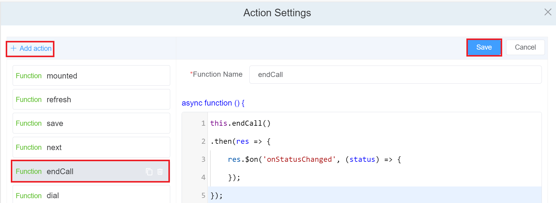 Next, Click on Add Action.